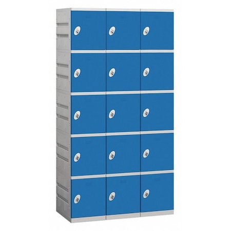 3 Tier Vented Locker, 36"Wx66"Hx15"D, 9 Door, Blue, Unassembled