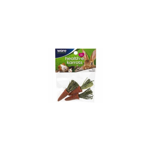 Health-E Karrots are a safe, fun chew for small animals. Chews keep teeth trimmed and provide a fun activity that relieves cage boredom. Safe, non-toxic chew. Animal safe food colors. Fun shape. Made with ground carrots and timothy hay.