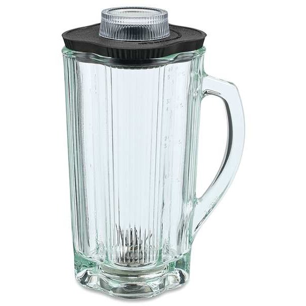 Blender Container with Lid and Blade, Product Type Blender Container Assembly, For Use With Heavy-Duty Food Blender, Compatible with Brand Waring, Compatible with Manufacturer Model Number 700G, 700S, 7011G, 7011HG, 7011HS, 7011S, CB15, CB15SF, CB15T, CB15TP, CB15V, CB15VP, HGB140, HGB146, HGB150, HGBSS, HPB305, MMB142, Overall Depth 9 3/8 in, Overall Width 6 1/4 in, Overall Height 6 1/2 in, Container Capacity 40 oz, Material Glass, Lid Color Black, Clear, Includes Blade, Lid