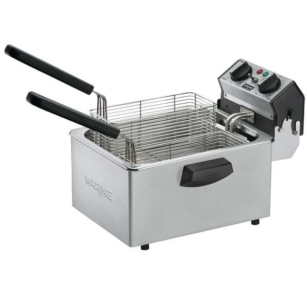 Electric Deep Fryer, Capacity 8.5 lb, Number of Fry Pots 2, Overall Height 11 in, Overall Width 16 1/2 in, Overall Depth 12 1/4 in, Material Stainless Steel, Heating Capacity Not Applicable, Maximum Operating Temperature 390 Degrees F, Voltage 120V AC, Color Silver, Finish Stainless Steel, Includes Twin Steel Wire Basket, Plug Type 5-15P, Power Source Electric, Wattage 1,800 W