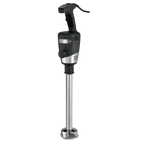 Immersion Blender, Capacity 14 gal, Horsepower 1 hp, Overall Width 5 in, Overall Depth 5 1/2 in, Overall Height 27 in, Blending Functions Emulsify, Mix, Puree, Sauces, Smoothie, Soups, Number of Speeds Variable, Voltage 120V AC, Maximum Speed 18,000 RPM, Wattage 750 W, Actuation Switch, Color Black, Container Material Stainless Steel, Includes Sound Enclosure Not Applicable, Current 6.3 A
