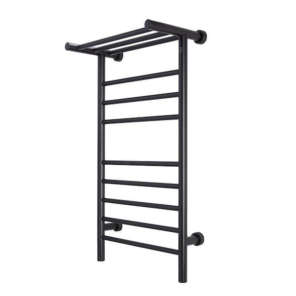 Summit Towel Warmer, Black, Dual Connection, 8 Bars & Heated 3-Bar Shelf