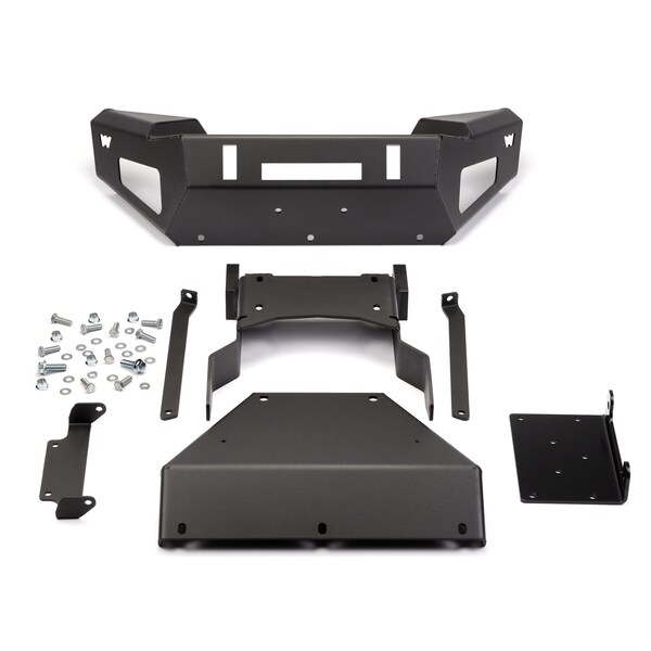 One Piece Angled Design; Direct-Fit; Winch Ready; Integrated Light Port To Mount Auxiliary Flood or Spot Lights (Sold Separately); With Welded Recovery Points For D-Shackles; Powder Coated Black Steel