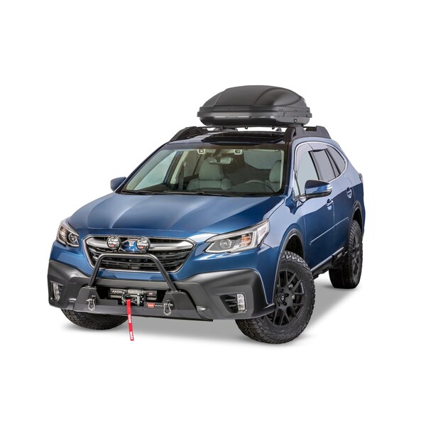 1-Piece; Powder Coated; Black; With Brush Guards; 2 Inch Diameter Cross Bars With Tabs To Mount Lights; Without Skid Plate; Without Step Plate. Requires Winch Mount