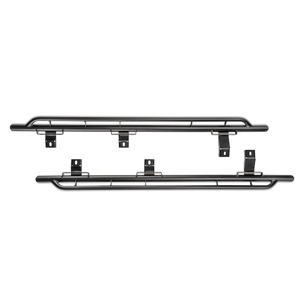 Rocker Panel Guard Rock Sliders Round Tube; Powder Coated; Black; Steel