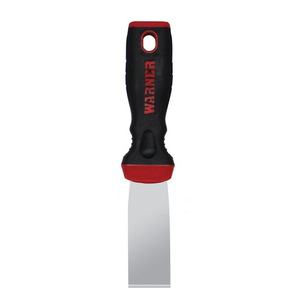 Stiff putty knife featuring patented ProGrip technology. Ergonomic, color-coded soft grip handle. Full tang blade. The ProGrip line uses a patented color-coded handle system to identify blade flexibility: Stiff, Flex, Full Flex. Matched color-coded icons on the labels demonstrate usages. This at-a-glance identification helps customers select the right tools for their needs and makes for easier, faster sales.