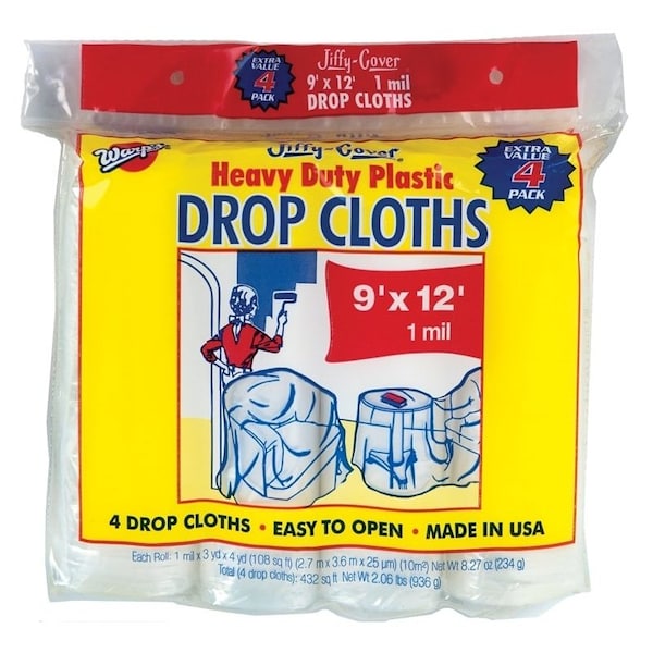 Drop Cloth, 12 ft L, 9 ft W, Plastic