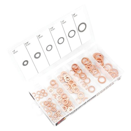 Washer Assortment, , Copper Plain Finish, 110 PCS