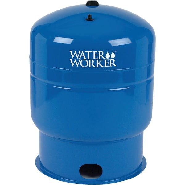 Factory pre-charge: 38 psi (pounds per square inch). Maximum working pressure 100 psi. Maximum operating temperature 200 F (degree Fahrenheit). Engineered to provide years of trouble-free service using cold rolled steel for a higher strength to weight ratio. Rugged stable steel base with protective plastic strip. Heavy-duty butyl rubber diaphragm and durable polyolefin liner to prevent corrosion. Waterworker tanks feature an appliance quality finish which is resistant to sunlight and harsh conditions. All tanks are completely lead free for safety. Meets NSF (National Sanitation Foundation) Standard 61 for clean safe drinking water. Blue tank.