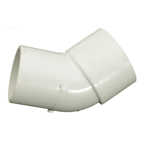 Swimming pools can be the focal point of some serious fun. We provide a wide selection of pool supplies and spa products means less time and effort maintaining and more time enjoying the good life. Buy our products and let the fun begin. Features -Socket spigot elbow Specifications - Size: 1.5 x 1.5 in. - Angel: 45 deg