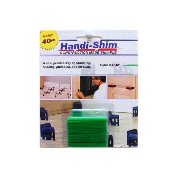 40 Each 132, Green Shim, Plumb, Space Level, Can Be Used In Virtually Every Construction Application Are Easily Removed For Use Over Over, Shims Can Be Cut To Fit Compression Resistant ReUsable Material That Will Not Rot, Countersunk Holes For Securing With Screws Or Nails