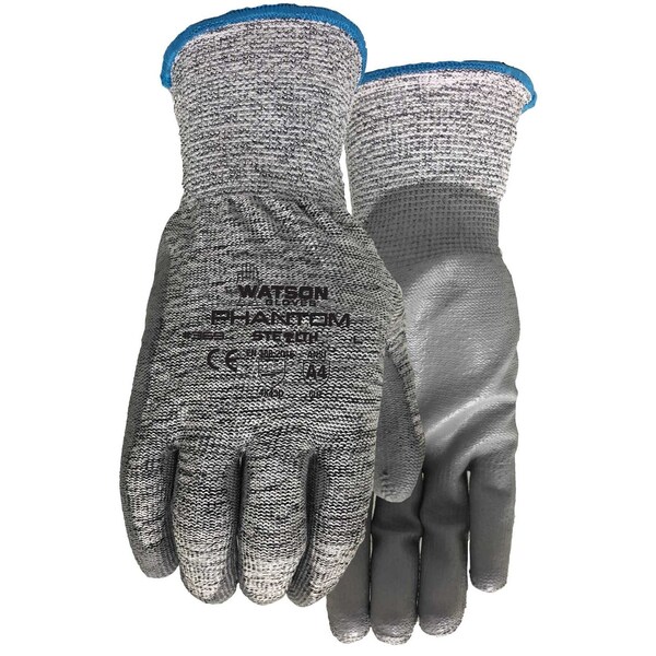 HPPE/glass/steel seamless knit shell is cut resistant offering excellent protection, ANSI A4. Lightweight polyurethane coated palm for a sure-grip. Ergonomically formed to reduce hand fatigue. Snug-fitting knit wrist keeps out dirt & debris.