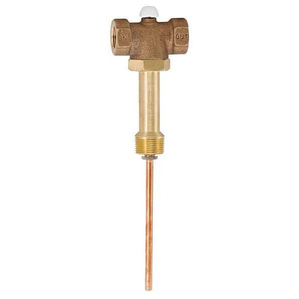 Automatic Temperature Gas Shutoff Valve, Inlet Type FNPT, Outlet Type FNPT, Inlet Size 1/2 in, Outlet Size 1/2 in, Thermostat Length 8 13/16 in, Body Height 9 29/32 in, 77,400 BtuH BtuH, Factory Set Pressure 150 psi, Max. Temp. 210 Degrees F, Shank Length 2-7/8 in, Auto Re-Seating No, Body Material Copper Silicon Alloy, Spring Material Stainless Steel, Body Width 2 1/2 in, Standards ANSI Z21.87