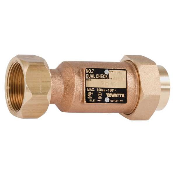 Backflow Preventer, Size 1 1/4 in, Connection Female Meter Thread (Swivel), Body Material Copper Silicon Alloy, Temp. Range 33 Degrees to 180 Degrees F, Max. Temp. 180 Degrees F, Max. Pressure 150 psi, Width Not Applicable, Length 4 9/16 in, Height 2 1/4 in