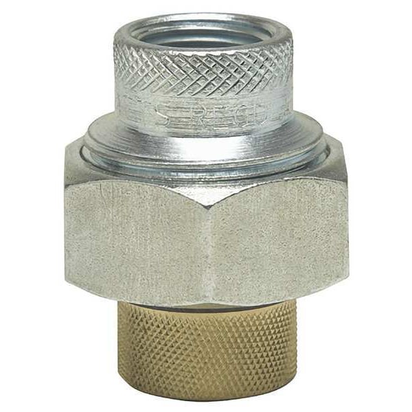 Dielectric Union, Brass, Steel, 1 1/4 in, Female, NPT, 1 1/4 in, Female, NPT, Insulator Material Polysulfone, Gasket Material Buna-N, Nut Material Zinc-Plated Galvanized Malleable Iron, 250 psi Maximum Operating Pressure, 33 Degrees to 180 Degrees F, 2 3/4 in Overall Length