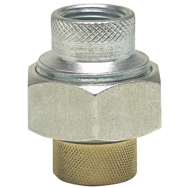 Dielectric Union, Brass, Steel, 1/2 in, Female, NPT, 1/2 in, Female, NPT, Insulator Material Polysulfone, Gasket Material Buna-N, Nut Material Zinc-Plated Galvanized Steel, 250 psi Maximum Operating Pressure, 33 Degrees to 180 Degrees F, 2 1/4 in Overall Length
