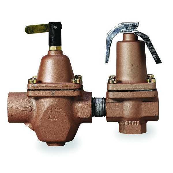 Combination Fill and Relief Valve, Body Material Iron, Inlet Type FNPT, Outlet Type FNPT, Inlet Size 1/2 in, Outlet Size 1/2 in, Factory Set Pressure 15 psi, Pressure Range 10 to 100 psi, Not Applicable BtuH, Disc Material Silicone, Overall Height 5 1/16 in, Application Commercial and Residential Hydronic Heating Systems, Overall Length 6 1/2 in, Seat Material Bronze, Spring Material Stainless Steel, Temp. Range 0 Degrees to 212 Degrees F, Test Lever Test Lever Included, Standards Not Applicable