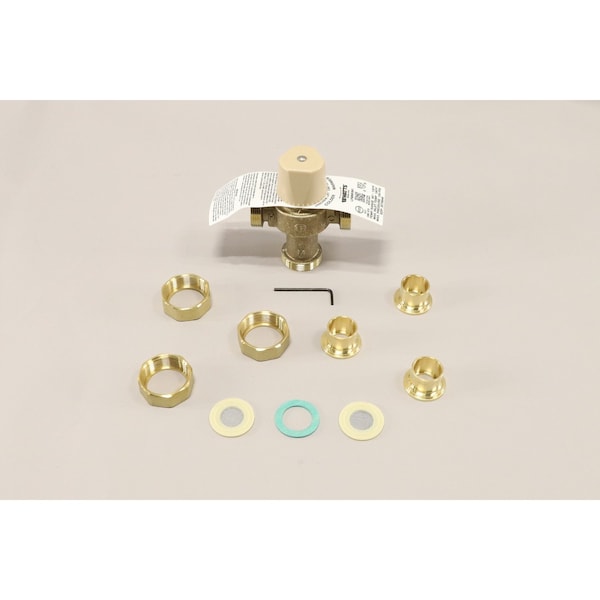 Mixing Valve, 80-120F, Solder Ends, 3/4 In.