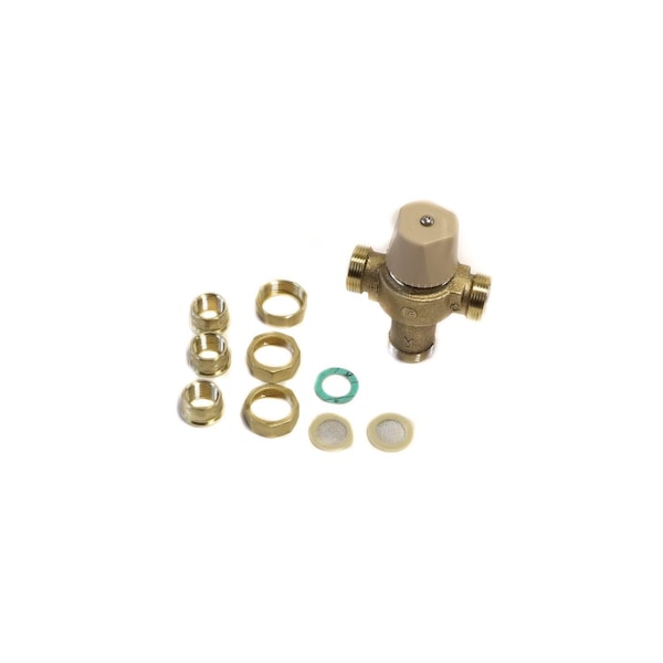 Mixing Valve, 80-120F, Threaded, 1/2"