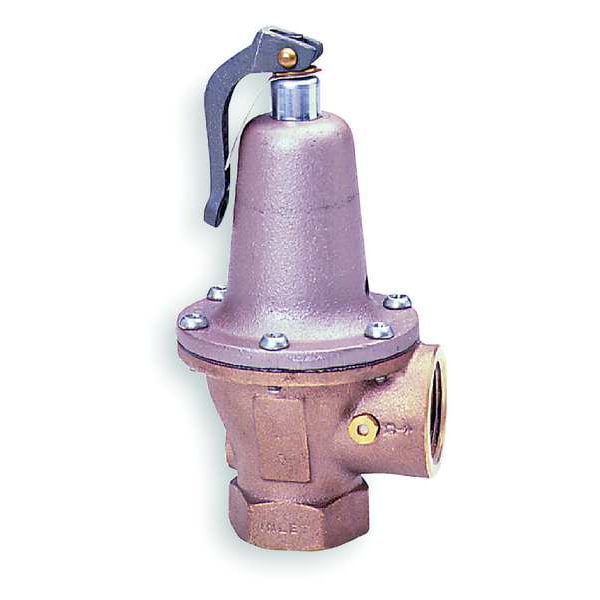 Safety Relief Valve, Body Material Cast Iron, Inlet Type FNPT, Outlet Type FNPT, Inlet Size 2 in, Outlet Size 2 1/2 in, Factory Set Pressure 30 psi, Pressure Range 30 to 75 psi, 5,250,000 BtuH BtuH, Disc Material Buna N, Overall Height 11 5/8 in, Application For Pressure Protection of Hot Water Heating Boilers, Overall Length 6 3/4 in, Seat Material Metal, Spring Material Brass, Temp. Range 0 Degrees to 250 Degrees F, Test Lever Test Lever Included
