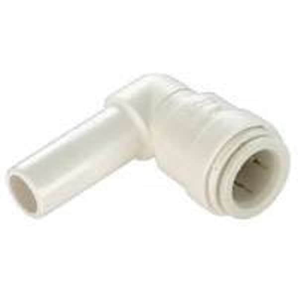 This quick-connect stackable elbow fitting is designed for use in potable water applications. It is made of polysulfone plastic and is tested, certified and approved for drinking water. This 1/2 in CTS fitting rotates fully under pressure, connects to multiple materials without the use of installation tools and features an integral collet with stainless steel gripping teeth and patented O-ring guide design. The pressure rating is 100 psi at 180 deg F 6.9 bar at 82 deg C or 250 psi at 75 deg F 17.2 bar at 24 deg C.