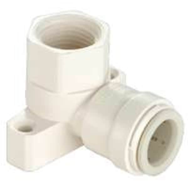 This 1/2 in FIP plastic quick-connect drop ear elbow incorporates stainless steel gripping teeth in the collets. These corrosion-resistant teeth allow the connectors to interconnect with multiple materials without the need for special tools or tube inserts. It works with copper, CPVC, PEX, LPDE, MPDE, HDPE and polybutylene tubing.