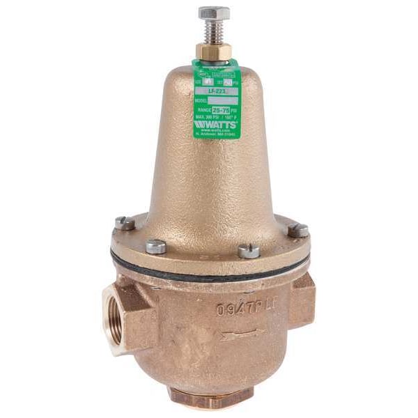 Water Pressure Reducing Valve, Valve Type Super Capacity, Strainer No, Material Lead Free Brass, Pipe Size 1/2 In., Preset Pressure Settings 50 psi, Pressure Adjustment Range 25 to 75 psi, Connection Type FNPT Union x FNPT, Height 8-1/4 In., Length 4-1/4 In., Max. Temp. 160 Degrees F, Max. Pressure 300 psi, Standards ASSE 1003, ANSI A112.26, CSA B356, Southern Standard Plumbing Code Military Standard MIL-V-18146B, IAPMO