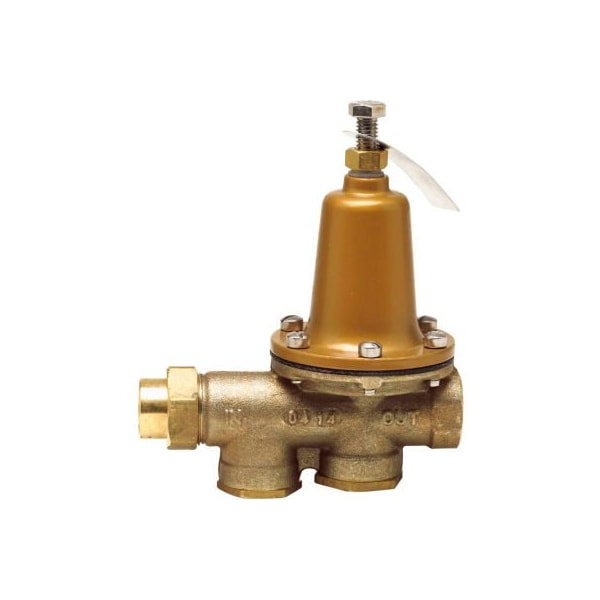 Watts 0009217 1/2" pressure reducing valve lf 25aub-z3 this 1/2 inch lead free brass water pressure reducing valve is the standard model, designed to reduce incoming water pressure to protect plumbing systems and reduce water consumption for commercial, industrial and residential applications. The easy maintenance assembly consists of a replaceable seat module, npt threaded female union inlet by npt female outlet and a bypass feature to control thermal expansion pressure. The temperature range is 33 to 160 degrees f (0.5 to 71 degrees c). Suitable for up to 300 psi (20.7 bar), the pressure range can be adjusted from 25 to 75 psi (172 to 517 kpa) with the standard setting at 50 psi (345 kpa).