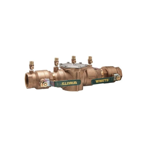 Watts 0062616 1-1/2" double check valve this 1 1/2 inch double check valve assembly is designed to prevent the backflow of polluted water from entering into the potable water supply due to backsiphonage and or backpressure in accordance with national plumbing codes and water authority requirements. Its compact modular design facilitates easy maintenance with a single access cover for in-line repairs. It is ideal for protection in continuous pressure piping applications and at cross-connections identified as non-health hazards and for contaminants at the service line entrance. This assembly consists of a bronze body construction, npt end connections, quarter turn ball valve shutoffs, top mounted test cocks, two in-line independent positive seating check modules, captured springs, and replaceable check discs and seats.