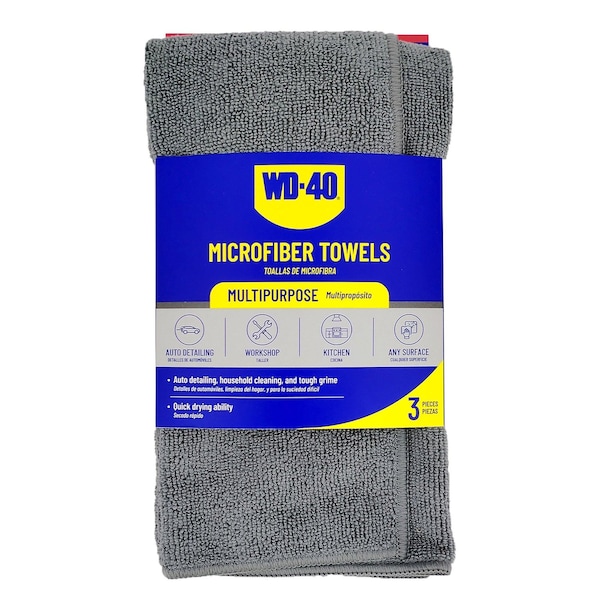 Multipurpose Microfiber Towel - Gray Color, 3PK