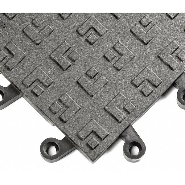 Interlocking Antifatigue Mat Tile, Anti-Slip Surface Yes, Anti-Slip Backing Yes, Number of Tiles 10, Washdown Safe Yes, X-Ray Detectable No, Width 18 in, Welding Safe No, Thermally Insulating No, USDA Certified No, Thickness 7/8 in, Surface Texture Raised Pattern, Surface Material PVC, Series ErgoDeck(TM), Surface Design Square Grid, Number of Interlocking Sides 4, Resistance Properties Chemical-Resistant, NSF/ANSI 52 No, Non-Interlocking Edge Style Straight, MVSS 302 Rating A Rating