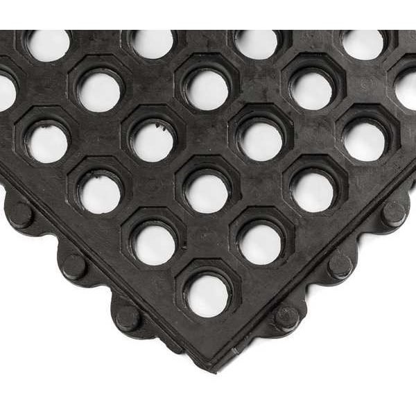 Interlocking Drainage Mat Tile, Anti-Slip Surface Yes, Drainage Hole Width 0.92 in, Anti-Slip Backing Yes, Number of Tiles 1, Washdown Safe Yes, X-Ray Detectable No, Width 3 ft, Welding Safe No, Thermally Insulating No, USDA Certified No, Thickness 5/8 in, Surface Texture Smooth, Surface Material Rubber, Series 24/Seven(R), Surface Design Smooth, Number of Interlocking Sides 4, Resistance Properties Chemical-Resistant, NSF/ANSI 52 No, Non-Interlocking Edge Style Straight