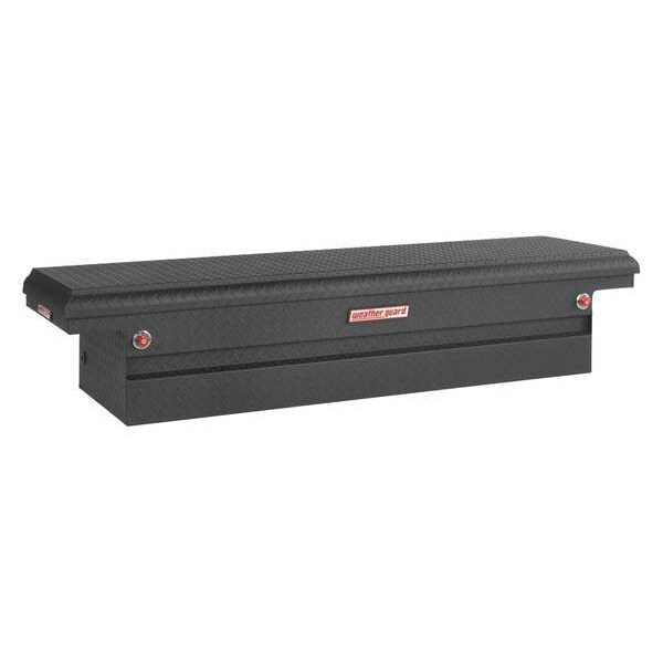 Crossover Truck Box, Black, Hinged, Overall Width 71 1/2 in, Overall Depth 20 1/2 in, Overall Height 15 in, Storage Capacity 8.8 cu ft, 0.058 in Gauge, Mounting Style Bolt-On, Locking System Keyed, Latch Mechanism T-Handle Compression, Includes Removable Metal Tray, Removable Plastic Parts Bin, Level Storage, Body Material Aluminum, Cover Material Aluminum, Lid Type Non-Adjustable