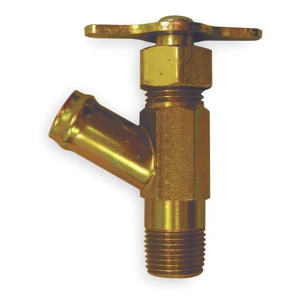 Drain Cock, Handle Type Wing, Body Material Steel, Maximum Pressure 150 psi, Pipe Size 3/8 in, Operating Temperature - Minimum -65 Degrees F, Operating Temperature - Maximum 250 Degrees F, Body Style Angle, Overall Height 2 7/8 in, Seat Position Internal, Connection Type MNPT, For Hose Inside Diameter 5/8 in, Handle Material Steel, Standards ASME 1016, Hex Size 11/16 in