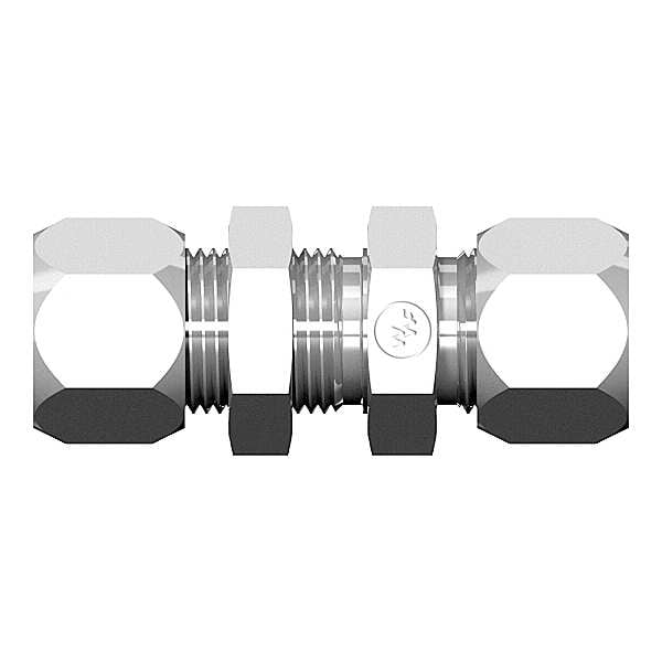 Compression Fitting Union, Application Hydraulics, Fitting Side A Connection Type Compression, Fitting Side B Connection Type Compression, Finish/Coating Zinc Trivalent, Fitting Material Steel, Fitting Side A Tube Outer Diameter 1/4 in, Fitting Side B Tube Outer Diameter 1/4 in, Material Grade 1045, 12L14, Maximum Operating Pressure 5,250 psi, Maximum Operating Temperature 450 Degrees F, Overall Length 1 7/8 in, Specific Fitting Shape Straight Bulkhead Union