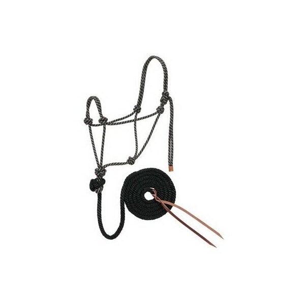 12 x 10', BlackTanWhite, Halter, Made From A Continuous Piece Of 38 Poly Rope With A Hand Knotted Construction A Double Noseband Crown Strap, Hollow Braid Spun Poly Lead