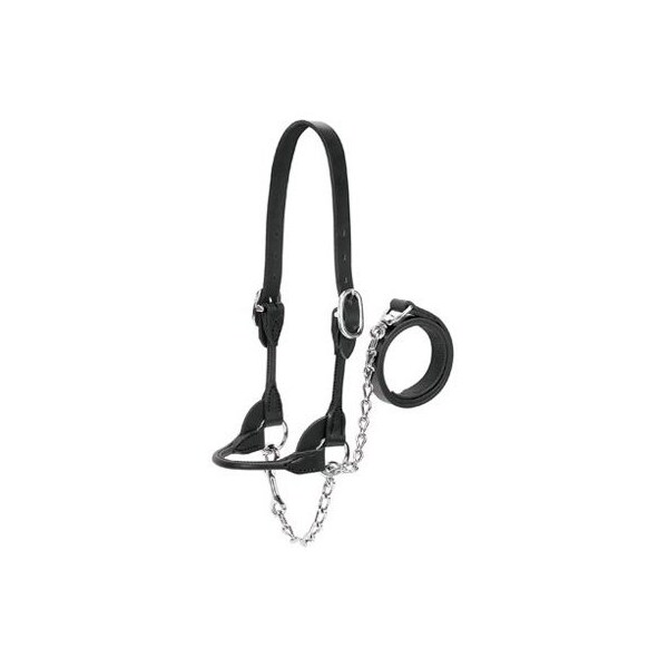 Small, Black, Bridle Leather Show Halter, Features A Rounded Noseband, Cheekpieces Durable Corner Stays, Leather Is Smoothed Finished For Maximum Comfort Style, Double Crown Adjustments Offer A Great Fit, Durable Nickel Plated Hardware, Comes Complete With A 20 Chain 36 Lead That Is Sewn For A Sleek, Refined Look