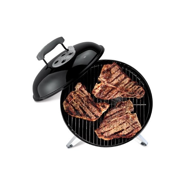 Weber Smokey Joe 14 in black portable charcoal grill The plated steel cooking grate provides 147 sq in of cooking space Control temperature without lifting the lid with the rustresistant aluminum damper Cleanup is easy with the aluminum ash catcher Porcelain enamel bowl and lid help maintain heat as well as preventing rusting and cracking