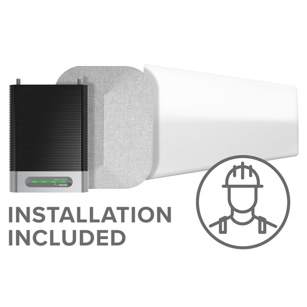 weBoost Installed Home Complete Cellular Signal BoosterThe weBoost Home Complete cell signal booster offers best-in-class performance in its price range. The Home Complete offers homeowners the ability to enhance networks speeds across all carriers throughout a large, multi-level home-up to 7,500 sq. ft. With the addition of Band 25, it also provides enhanced support of Sprint LTE and is 5G ready. The Home Complete's booster and inside Antenna are designed to complement contemporary dcor. For ease of installation and versatility, the wall-mount brackets for the booster and inside Antenna can be secured with the included 3M Command strips or using screws not included. The inside Antenna also features a built-in kickstand for optional shelf placement. With donor and server ports on the top of the booster unit, the Home Complete helps prioritize cable access and organization. Users will experience faster data speeds, better voice quality, fewer dropped calls, and superior streaming capability. Like all weBoost boosters, it works on all major US carriers-including Verizon, AT&T, T-Mobile, Sprint, US Cellular, Straight Talk, and more. As the name implies, weBoostInstalled includes professional installation in all 50 states in any ZIP code. Certified installers are available within a three-hour-or-less drive of any U.S. address.Product Features:Professional installation included in all 50 statesCES 2020 Innovation Honoree AwardweBoost's most powerful multi-user cell signal booster available for residential use.Up to 24 dBm in uplink-output power and up to 12 dBm in downlink-output power.Users now get signal up to 26% farther from towers and enjoy up to 46% more coverage area than the Home MultiRoom.Simultaneously boosts existing cell signal for multiple users throughout a large home or multi-story residence-up to 7,500 sq. ft. depending on outside signal conditions.Where technology meets contemporary design; featuring a fabric-covered inside panel antenna and custom wall-mount brackets with 3M CommandTMStrips for easy install.Works on ALL cellular devices and on all U.S. carrier networks.