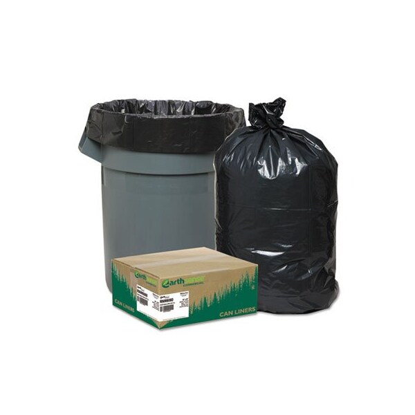 Extra heavy duty recycled liners are suitable for all trash applications. Ideal for state and local municipalities that mandate purchasing of recycled content products. Star bottom seal construction distributes weight more evenly and resists leaks. Coreless rolls for convenient dispensing. Black color hides unsightly trash. Application: Can Liner; Capacity Range Volume Min: 55 gal; Capacity Range Volume Max: 60 gal; Thickness: 1.65 mil.