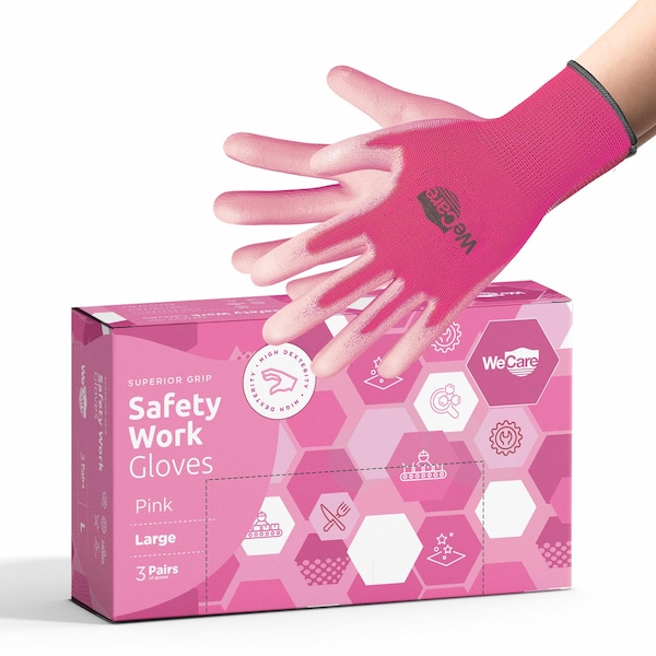 Gloves, Pink, L 3 PK