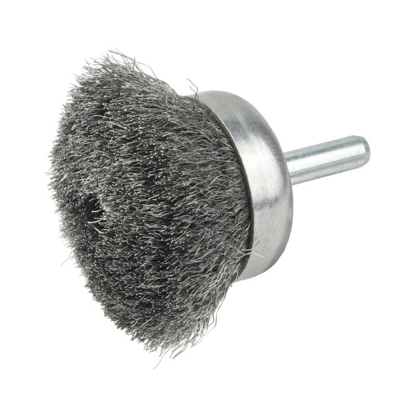 Weiler 1-3/4" Crimped Wire Utility Cup Brush provides very flexible brushing action for light to medium duty, general purpose applications. 1/4" stem for use on CNC/milling/automatic machine, die grinder, drill, drill press, right angle die grinder and straight grinders. For Light to Medium Duty, General Purpose Applications. . . . .