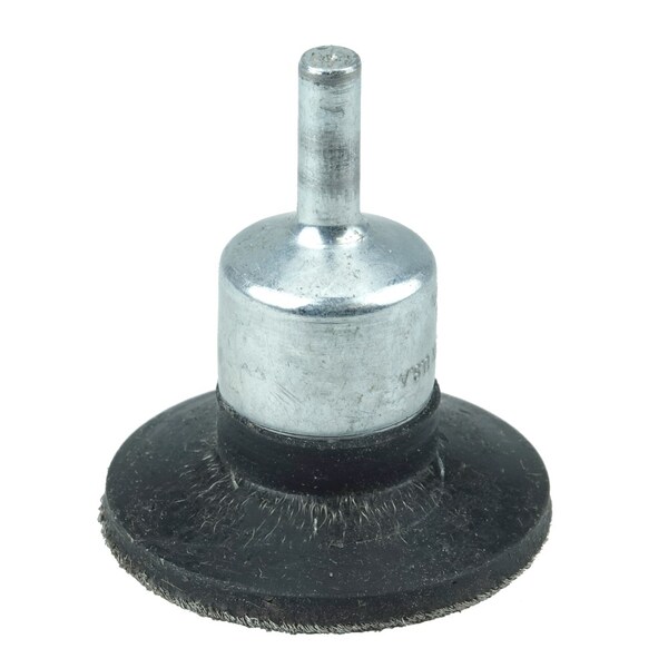 Weiler 1-3/4" Polyflex Encapsulated Circular Flared Crimped Wire End Brush features a heat-stabilized black elastomer that gradually wears exposing consistent short trim for maximum aggression and long life. Ideal for applications on flat surfaces that require maximum aggression but no flexibility in the brushing action. 1/4" stem for use on die grinder and right angle air die grinder. Heat stabilized black elastomer gradually wears exposing consistent short trim for maximum aggression and long-life. Ideal for applications on flat surfaces that require maximum aggression but no flexibility in the brushing action. . . .