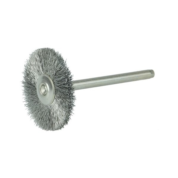 Weiler 1" Miniature Wire Wheel Brush contains fine crimped wire fill for light-duty cleaning and deburring on non-ferrous and precious metals. 1/8"a stem for use on flexible shaft tool and high speed pencil grinders. Fine crimped wire fill for light duty cleaning and deburring. . . . .