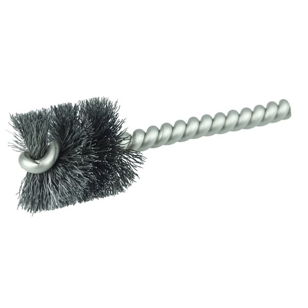 Weiler 1" Round Power Tube Brush is Ideal for cleaning and deburring smooth or threaded blind holes on steel parts. 1/4" stem diameter for use on corded/cordless hand drill, drill press, drilling machine, CNC/milling/automatic machine. Features a single continuous length of stainless steel stem wire filled with a single spiral of crimped wire for a more flexible brushing action. Single continuous length of stainless steel stem wire. Single spiral of crimped wire fill for a more flexible brushing action. For use on smooth or threaded blind holes. . .