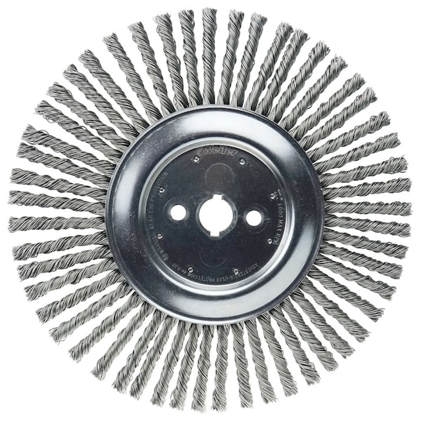 Weiler 12" Cable Twist Knot Wire Wheel Brush features heavy-duty construction and an extra long trim length for cleaning expansion joints and cracks in concrete and asphalt. 1" arbor hole for use on walk behind machines. feature heavy-duty construction and an extra long trim length for cleaning expansion joints and cracks in concrete and asphalt. . . . .