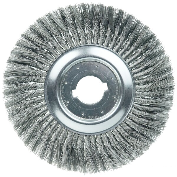 Weiler 12" Standard Twist Knot Wire Wheel Brush provides a heavy-duty brushing action with some flexibility for demanding deburring cleaning and surface preparation applications on somewhat irregular surfaces. Featuring Weiler's individual knot hole construction, these radial brushes are available in heat-treated steel, type 302 stainless steel and bronze wire for use in a wide variety of applications. 2" arbor hole for use on bench/pedestal grinder, die grinder, right angle die grinder and straight grinders. Provide heavy duty brushing action with some flexibility. Ideal for demanding cleaning applications on somewhat irregular surfaces. Knot wire wheels with an arbor hole are intended for use on straight grinders and stationary machines such as bench or pedestal grinders and buffing lathes. Featuring Weiler's individual knot hole construction, these radial brushes are available in heat-treated steel, type 302 stainless steel and bronze wire for use in a wide variety of applications. .