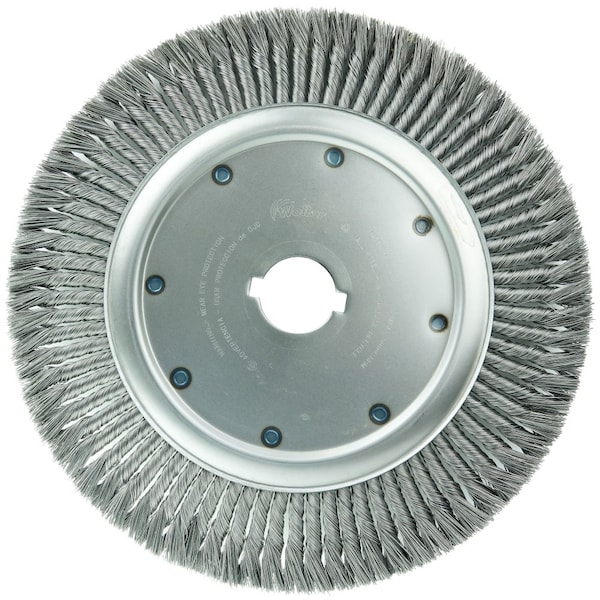 Weiler 15" High Density Standard Twist Knot Wire Wheel Brush is engineered for maximum performance in production applications. Featuring Weiler's individual knot hole construction, these radial brushes are available in heat-treated steel, type 302 stainless steel and bronze wire for use in a wide variety of applications. 2" arbor hole for use on automated equipment such as dedicated gear deburring machines. Engineered for maximum performance in production applications. For use on automated equipment such as dedicated gear deburring machines. Intended for use on straight grinders and stationary machines such as bench or pedestal grinders and buffing lathes. Featuring Weiler's individual knot hole construction, these radial brushes are available in heat-treated steel, type 302 stainless steel and bronze wire for use in a wide variety of applications. .