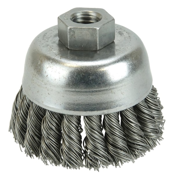 2-3/4" Single Row Knot Wire Cup Brush .020" Steel Fill 1/2"-13 UNC Nut