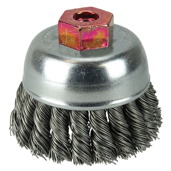 Weiler 2-3/4" Single Row Knot Wire Cup Brush provides heavy-duty brushing action with some flexibility. Ideal for demanding cleaning applications on relatively flat surfaces. M10 x 1.50 nut for use on right angle grinders. Provide heavy duty brushing action with some flexibility. Ideal for demanding cleaning applications on relatively flat surfaces. . . .